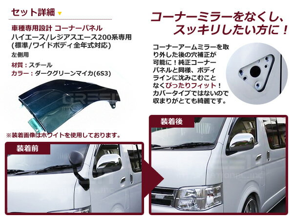 送料無料 フロント用コーナーパネル 塗装済み H16.8〜 ハイエース 200系 1型 2型 3型 4型 標準 ワイド DX S-GL 前期後期対応 左側 ダークグリーンマイカ 6S3